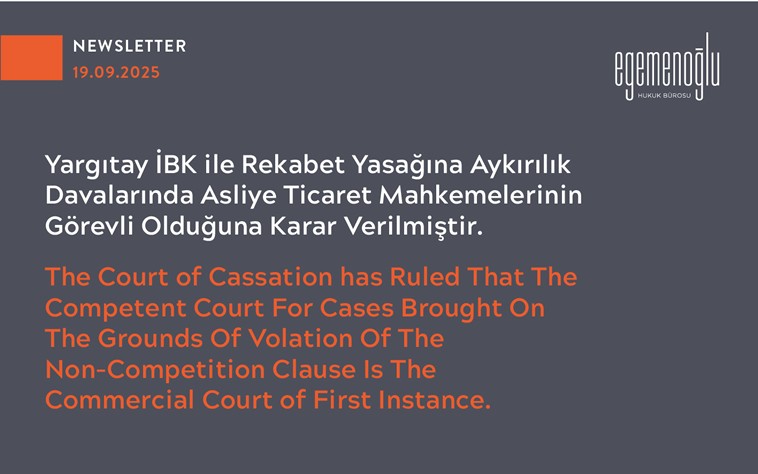 Along with the Court of Cassation’s Decision on the Unification of Case Law, it has been determined that the court of first instance commercial courts will now be the court to settle disputes between employees and employers regarding non-competition clauses. In practice, it is expected that filing lawsuits regarding non-competition clauses between employees and employers in a court other than the court of first instance commercial court will result in the case being dismissed due to lack of jurisdiction. |